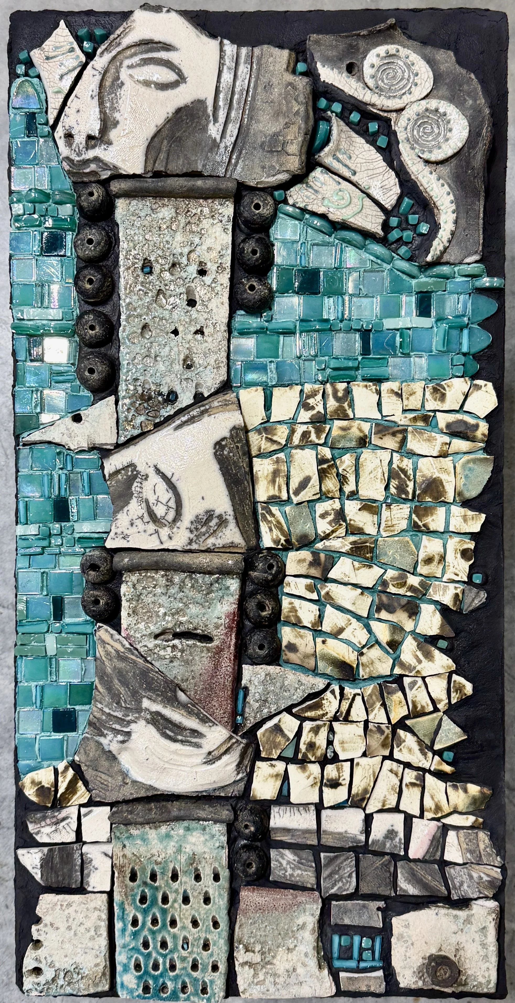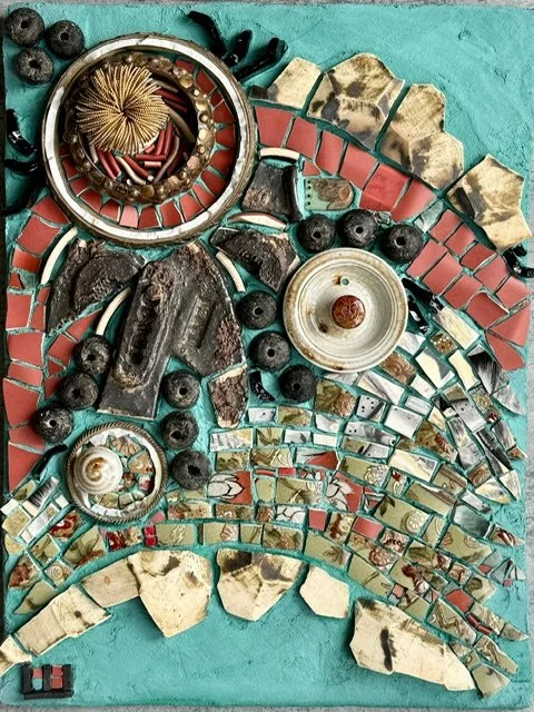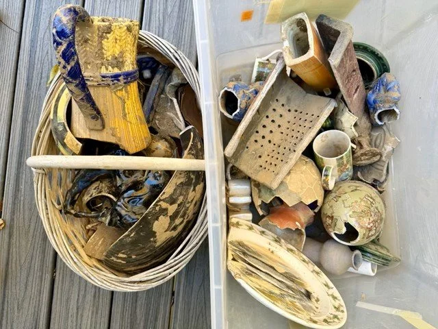 Salvaged Raku ceramics and Beads. Glass