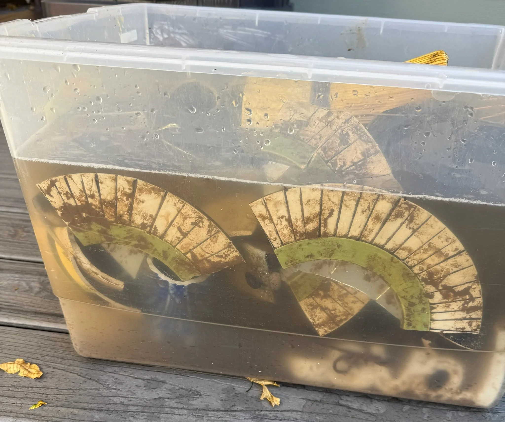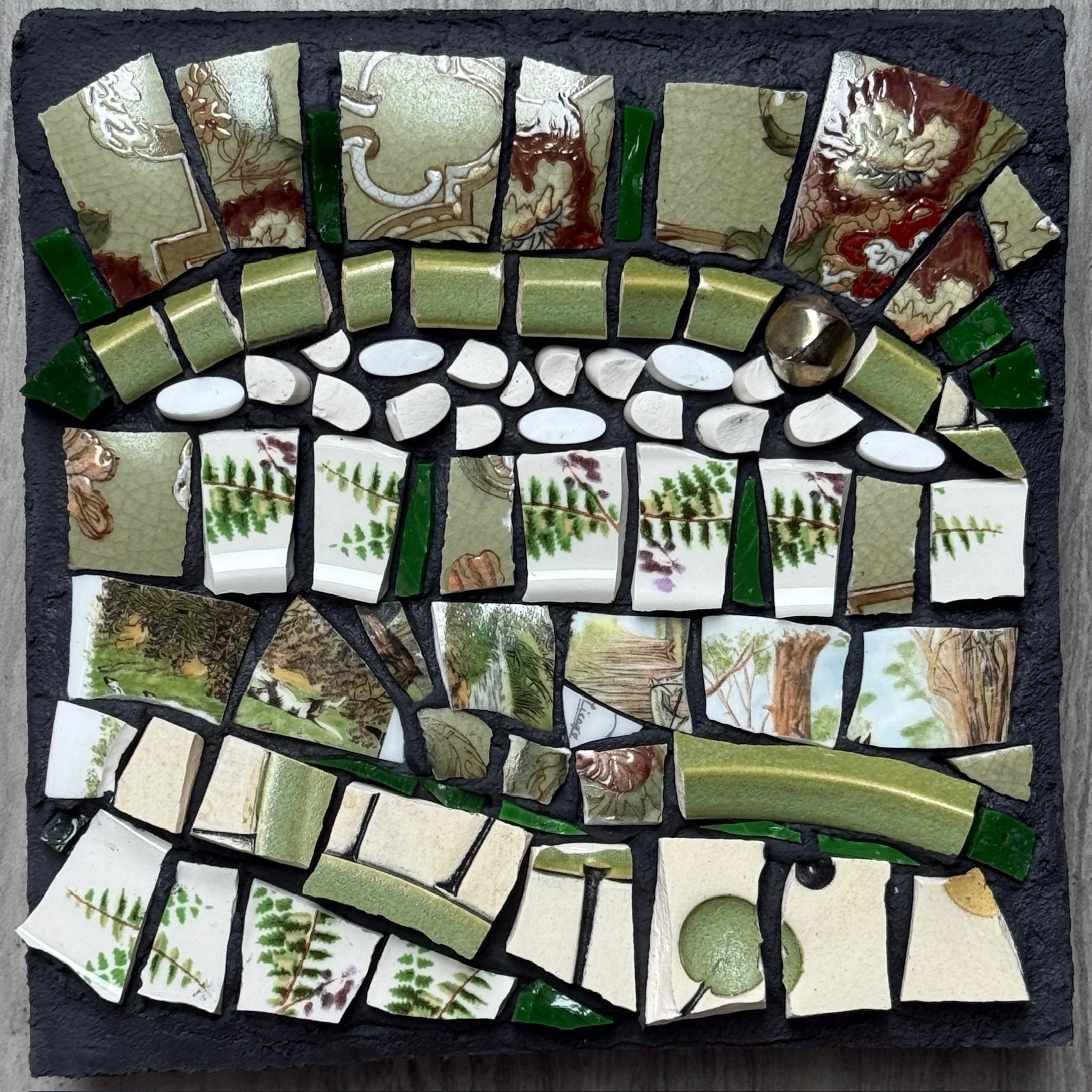 Salvaged ceramics and glass. Glass